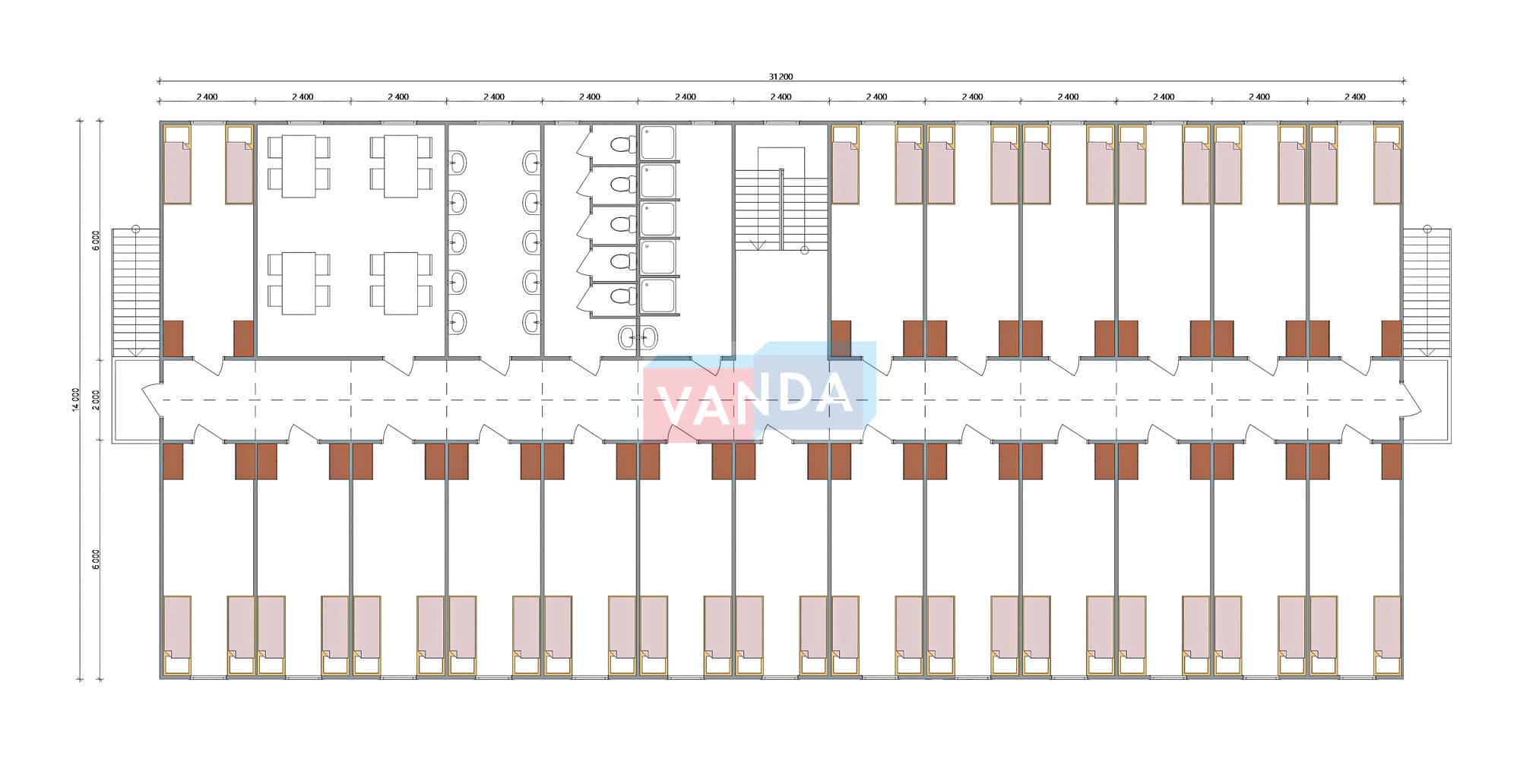 Проект вахтового посёлка 14.0х31.2 14.0x31.2 873.6 OSB 9 мм. Оцинкованный профлист 20 640 000 р. Уточняйте у менеджера